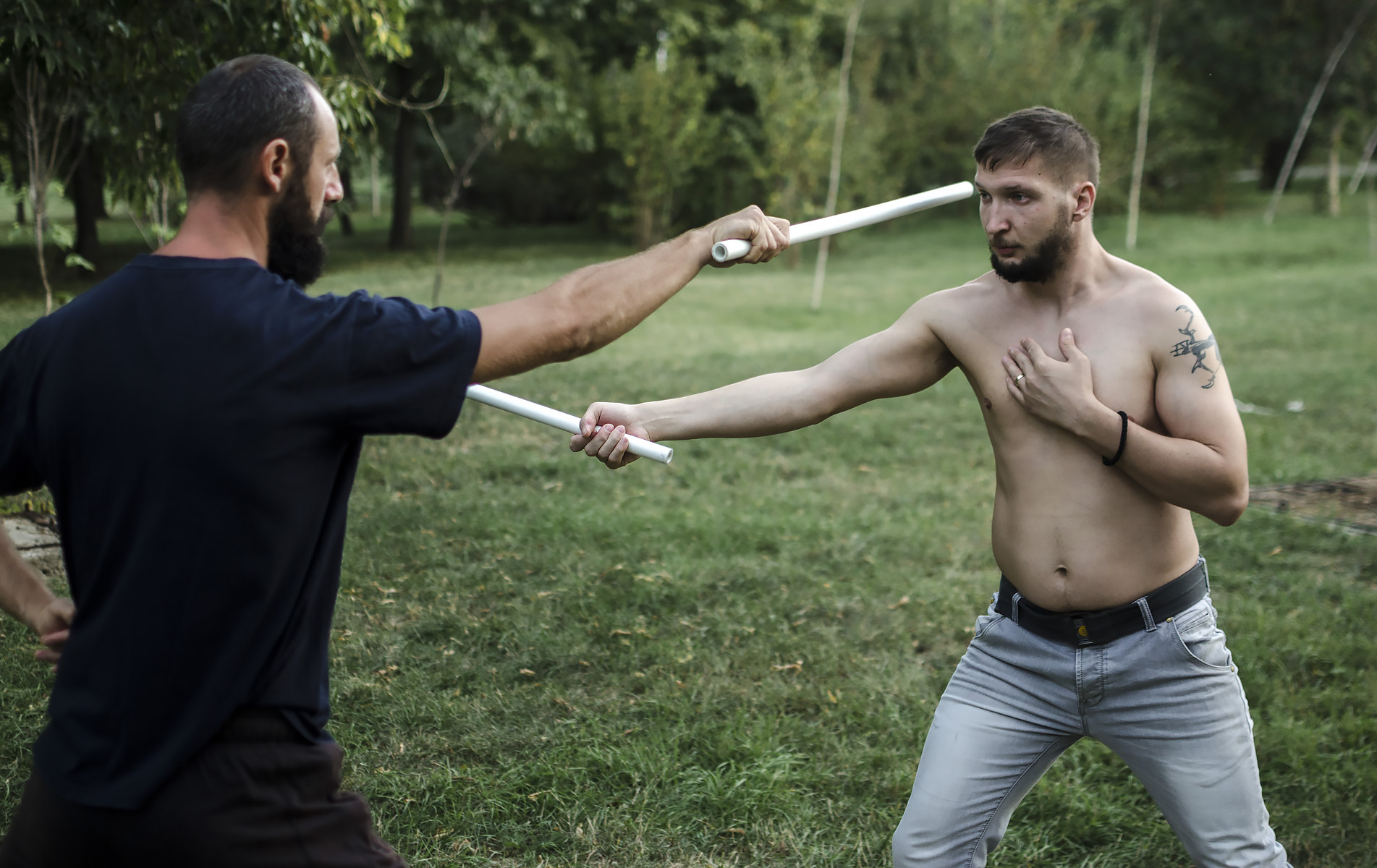 - Practicing sword fighting in Bucharest park