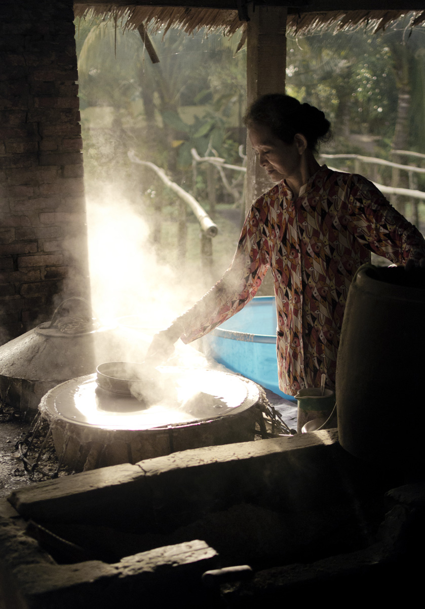 In places, rice noodles are still made by hand. This sounds simple, but photography is often thankful for manual labour.