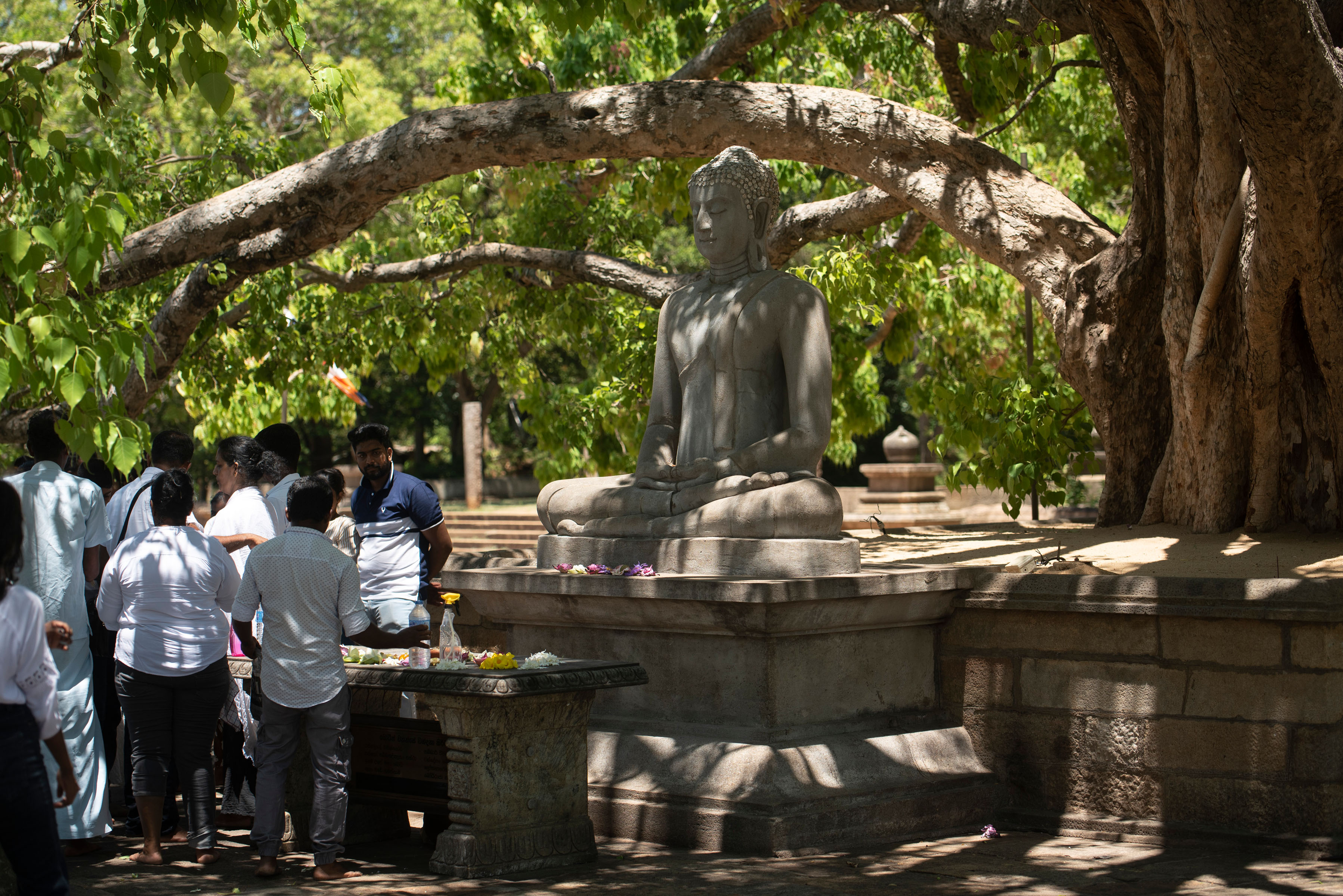 Milk offering at Buddha statue at Jethawanaramaya Stupa, Anuradhapura, Sri Lanka