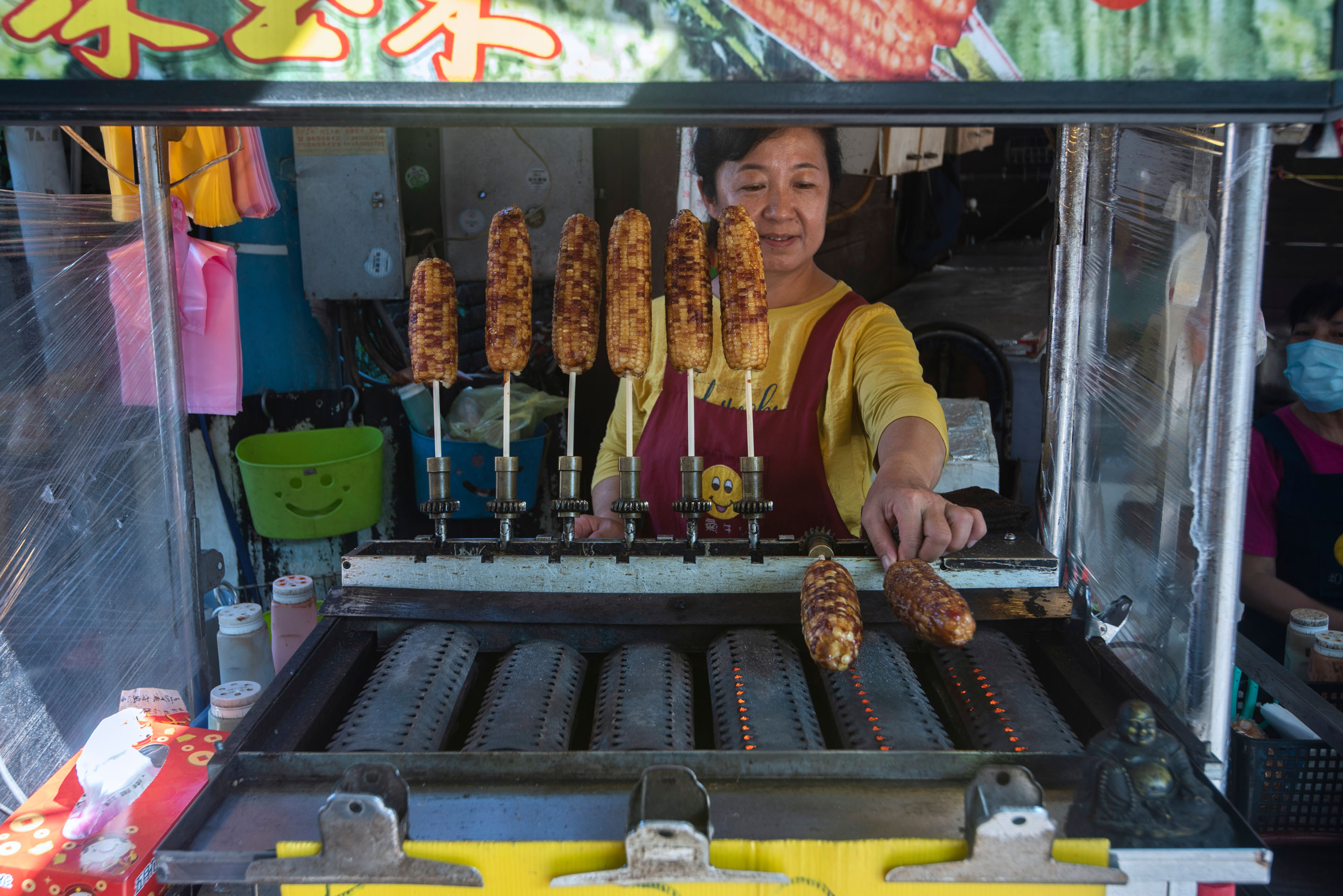 Selling fried corn in Daxi Old Street, Taiwan